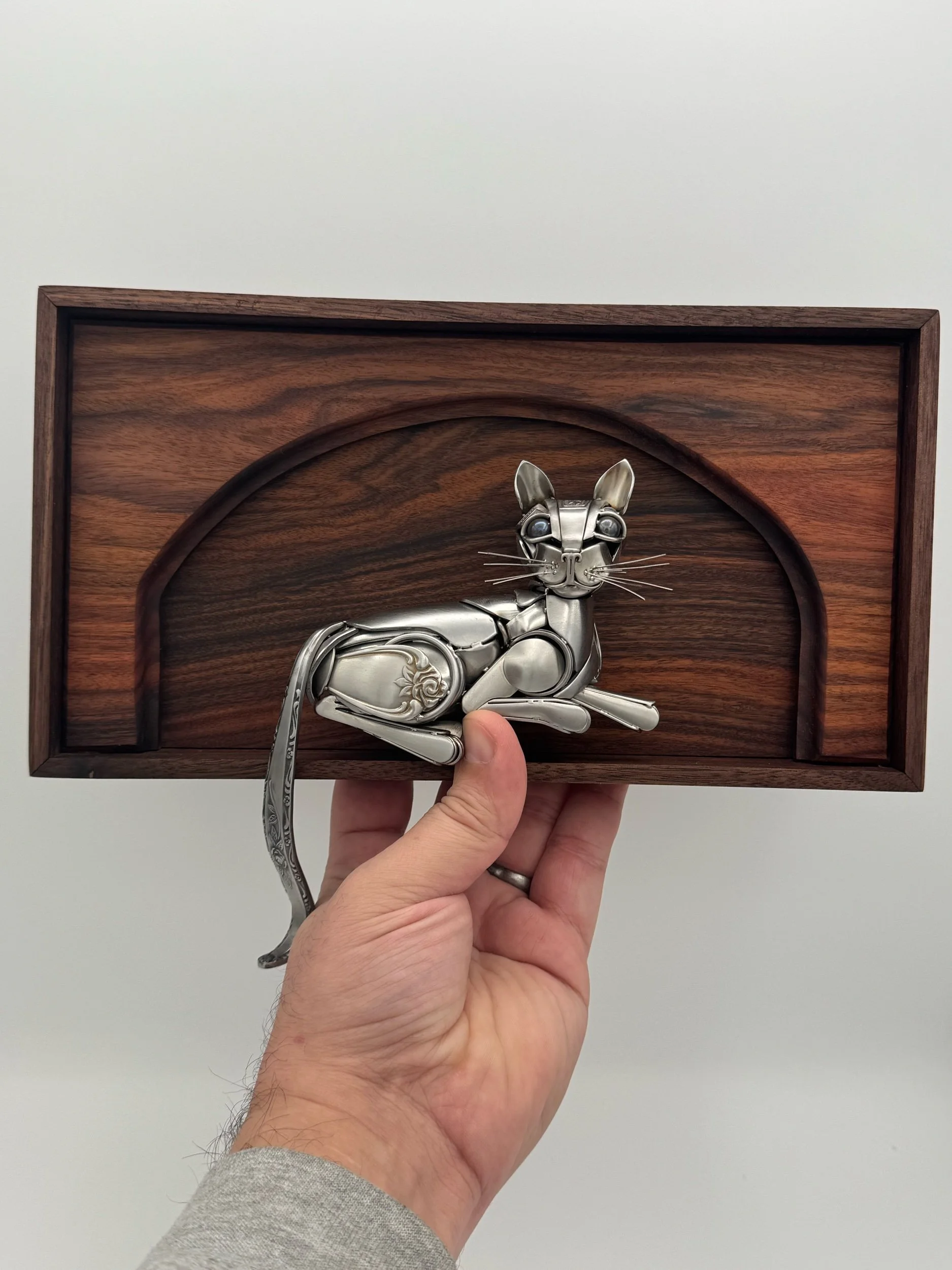 Shop Categories: All Cats Christmas Ornaments Nestlings Butterflies and Bugs Wall Mount Birds Shop All | Cats | Christmas Ornaments | Nestlings | Butterflies and Bugs | Wall Mount Birds | Nestling - Spoon Bird Sculpture $125.00 Sold out Cutlery Bird Sculpture - “Arcella” $450.00 Sold out Nestling - Spoon Bird Sculpture $125.00 Sold out Cutlery Cat Sculpture - “Fiona” $1,200.00 Sold out Cutlery Bird Sculpture - “Silas” $400.00 Sold out