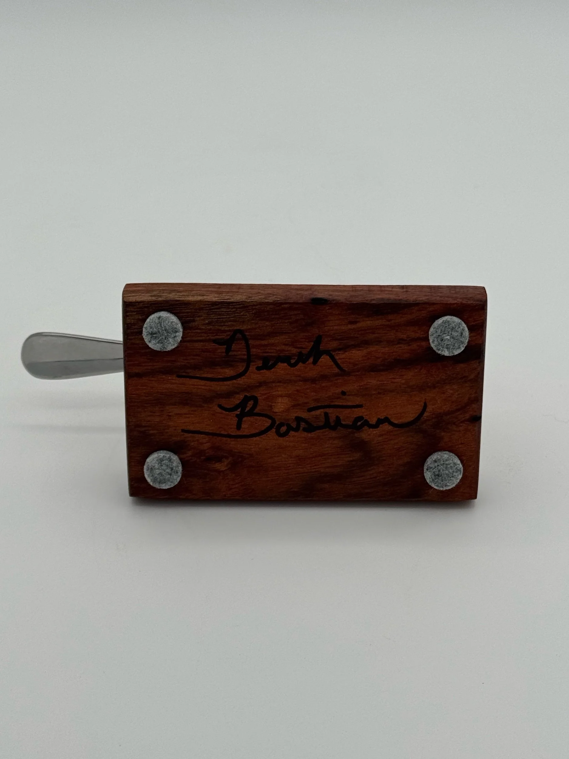 All steel materials used in my pieces are stainless steel, so they will never rust. All metalworking and woodworking are done exclusively by me.