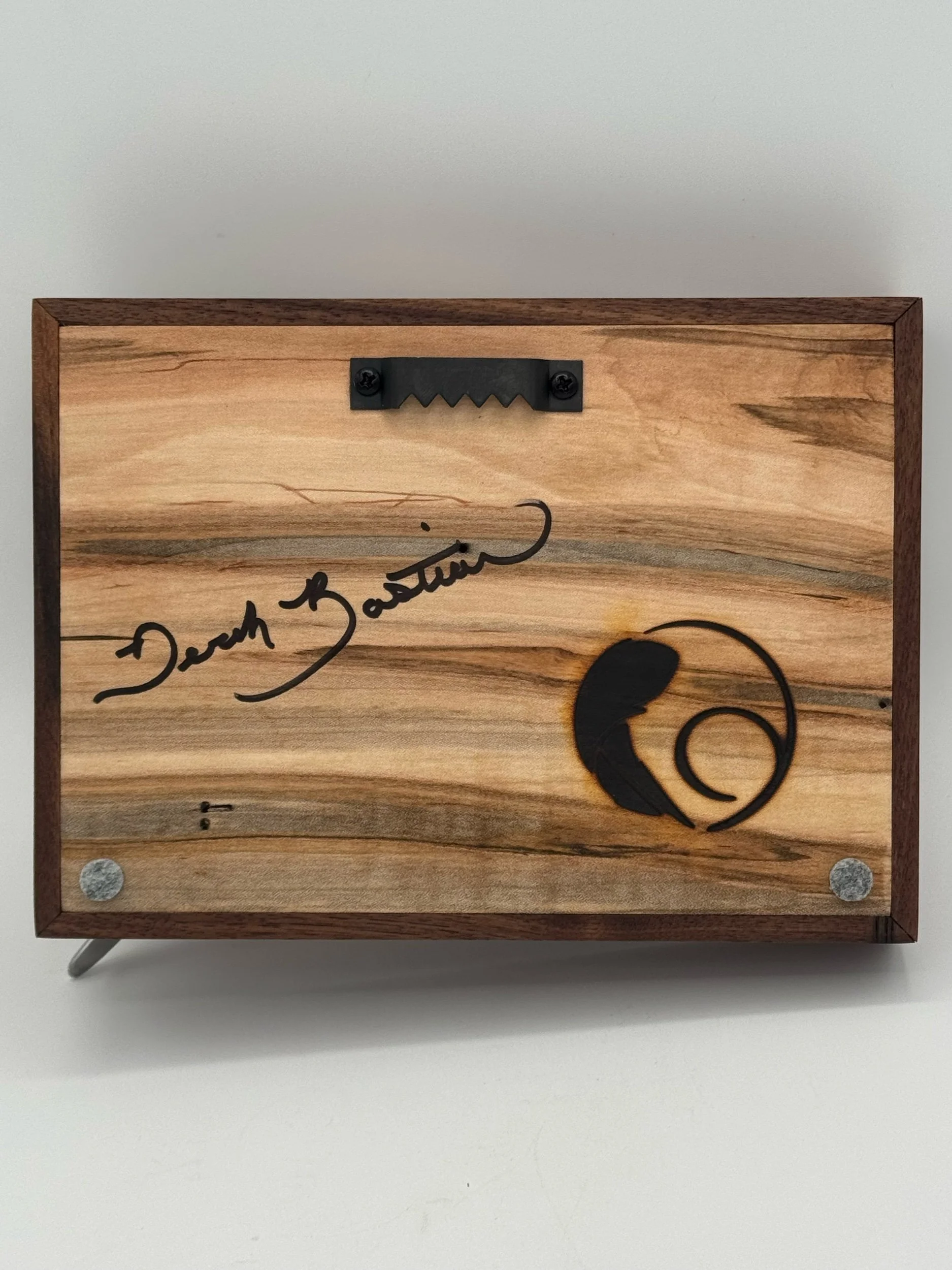 Ambrose is Tig and Laser welded with clean precision and attached to an Ambrosia Maple wall mount with Walnut frame.